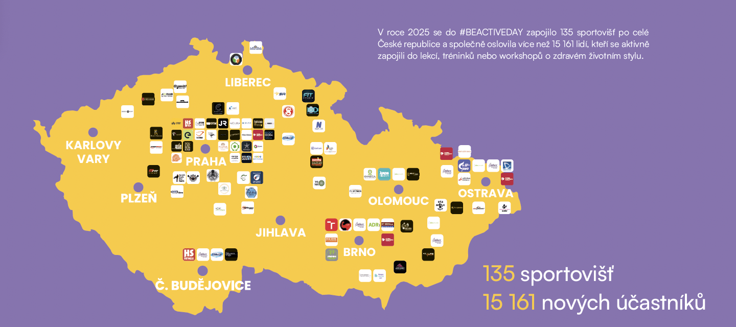 V rámci #BEACTIVEDAY se letos otevřelo 135 fitness center a sportovišť, která nabídla veřejnosti lekce, tréninky a workshopy zdarma. Do pohybu se aktivně zapojilo více než 15 000 lidí, z nichž mnozí do fitness centra zavítali poprvé. Právě to je hlavní myšlenka této iniciativy – otevřít dveře všem, kdo chtějí udělat první krok ke zdravějšímu životu.